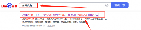 廣東高*空調設備有限公司百度排名快照案例欣賞