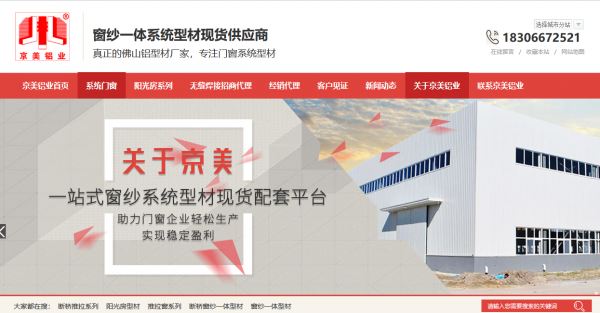 佛山市京*鋁業有限公司擁有24年斷橋鋁型材行業經驗,華南總部坐落于“中國鋁材之都”廣東省佛山市南海大瀝鎮,專業生產銷售各種斷橋鋁合金門窗材料。華東總部位于:安徽省合肥市長豐縣雙鳳開發區寶灣國際一號倉107法蘭希歐。公司以“研發全品類產品更新,打造鋁型材窗料專家”為核心,讓客戶以新的款式、少的庫存、低的運作成本再加上我們完善的配套服務去快速盈利。京美鋁業擁有5000t現貨庫存,1萬多方現貨倉庫,5輛貨物運輸車輛,當天打款當天發貨,為客戶提供無憂服務,并擁有專業的研發團隊提供專屬定制服務。