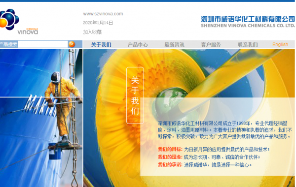 深圳市威諾華化工材料有限公司成立于1998年,專業代理經銷塑膠、涂料、油墨用原材料。本著專業的精神和執著的追求,我們不斷探索,積極突破,致力為廣大客戶提供最新最優的產品和服務。 我們的目標: 為日新月異的應用提供最優的產品和技術; 我們的理念: 成為您長期、可靠、誠信的合作伙伴; 我們的承諾: 選擇威諾華,就是選擇一種信心。