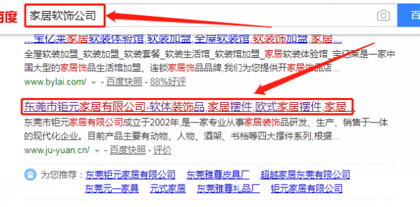 我們公司與東莞市鉅元家居有限公司合作中,對這個公司所經營的家具軟飾這個行業提供了SEO網站優化,同時讓我們積累到更多的經驗,與東莞市鉅元家居有限公司建立了友好的合作伙伴的關系,也提高了海洋網絡在同行業的知名度,提高了東莞市鉅元家居有限公司在同行業的知名度,發展越來越好。