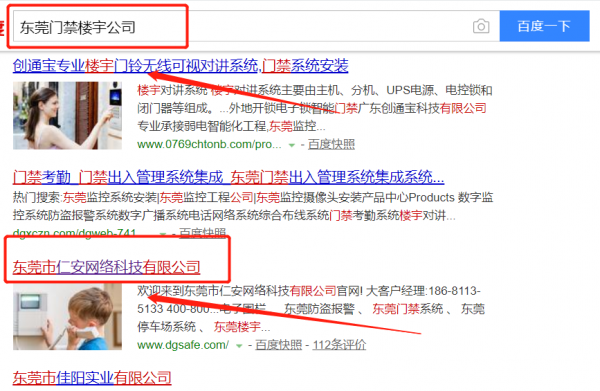 我們公司與東莞市仁安網絡科技有限公司合作中,對這個公司所經營的門禁樓宇這個行業提供了百度快照排名,與該公司的合作,更多的客戶讓我們公司為其提供百度快照排名,通過每一次合作,我們公司不斷完善自己,同時希望合作伙伴在經營的路上越來越好。