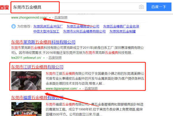 我們公司與東莞市江鎂五金模具有限公司合作中,對這個公司所經營的五金模具這個行業提供了百度快照排名,與該公司的合作,更多的客戶讓我們公司為其提供百度快照排名,通過每一次合作,我們公司不斷完善自己,同時希望合作伙伴在經營的路上越來越好。