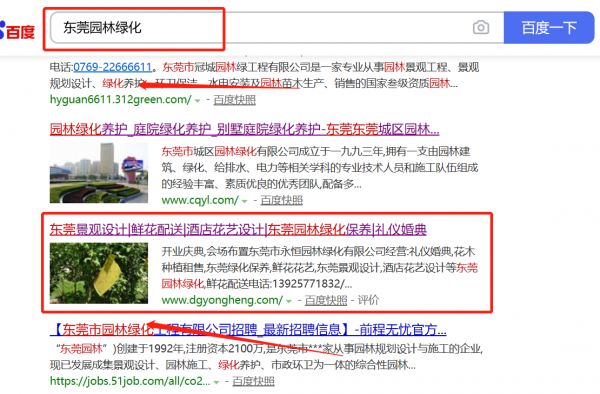 東莞市*恒園林綠化有限公司選用我司企業園林綠化行業的網站優化產品,其SEO關鍵詞有園林綠化。通過對搜索引擎目標關鍵詞優化,使目標網站的相關信息顯示在百度首頁,為企業挖掘更多的潛在客戶的同時帶來海量的商機。東莞市*恒園林綠化有限公司成立于2010年,是經東莞市市場監督管理局審核的有資質的公司,其統一社會信用代碼:9144190**64572194L。公司地址:廣東省東莞市長安鎮錦廈社區沙埔頭北四巷11號。