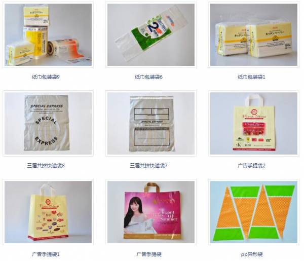 公司采用高級優質原料專業生產HDPE、LDPE、LLDPE、PPE、CPE、PP、BOPP、PET、PVA、PPU、CPP等防靜電可降解和環保材料的各款包裝袋,其中有:沖孔手挽袋、吊帶袋、粘貼袋、郵件袋、穿繩袋、勾仔袋、叉耳袋、通耳袋、卡頭袋、骨袋、背心袋、不規則形狀袋和無紡布袋。它們廣泛應用于各個領域,如服裝、鞋子、精品、飾品、禮品、玩具、食品、化妝品、電子產品、五金、和各種企業,如品牌連鎖店、超市、工廠等等。得力于工廠里經驗豐富的300位員工的勤勞與智慧,其中超過30人的品管隊伍在每個生產工藝中執行著嚴密的質量管控;借力于超過100臺精密高端制造設備的日夜運作,包括三層共擠高速吹膜機, 6-12色電腦套色高速銅版、膠版印刷機,全自動臺灣膠水貼補片機,