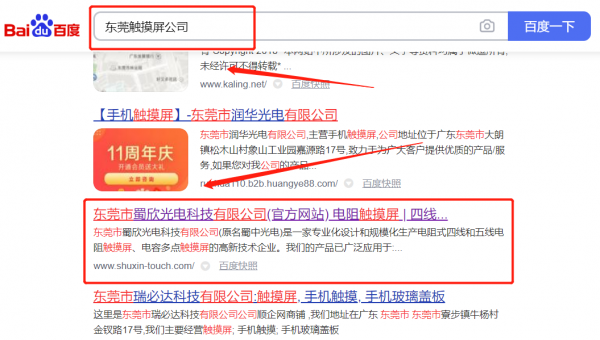 我們公司與東莞市蜀*光電科技有限公司合作中,對這個公司所經營的觸摸屏這個行業提供了關鍵詞排名,與該公司的合作,更多的客戶讓我們公司為其提供SEO網站優化,通過每一次合作,我們公司不斷完善自己,同時希望合作伙伴在經營的路上越來越好。