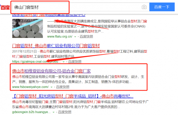 我們公司與佛山市柏維亞鋁業有限公司合作中,對這個公司所經營的門窗型材這個行業提供了關鍵詞搜索排名,與該公司的合作,更多的客戶讓我們公司為其提供關鍵詞搜索排名,通過每一次合作,我們公司不斷完善自己,同時希望合作伙伴在經營的路上越來越好。