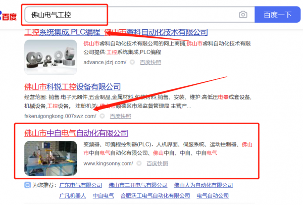 佛山市*自電氣自動化有限公司SEO優化排名效果展示