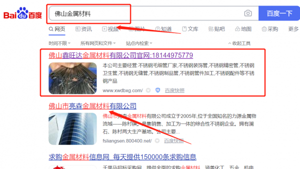 我們公司與佛山市*旺達金屬材料有限公司合作中,對這個公司所經營的金屬材料這個行業提供了網站SEO優化,與該公司的合作,更多的客戶讓我們公司為其提供百度快照排名,通過每一次合作,我們公司不斷完善自己,同時希望合作伙伴在經營的路上越來越好。