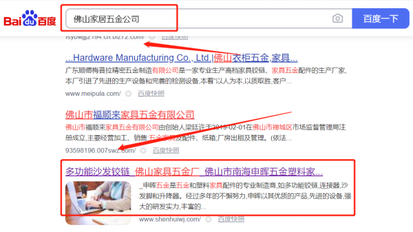 申*五金塑料家具有限公司網絡推廣排名效果展示
