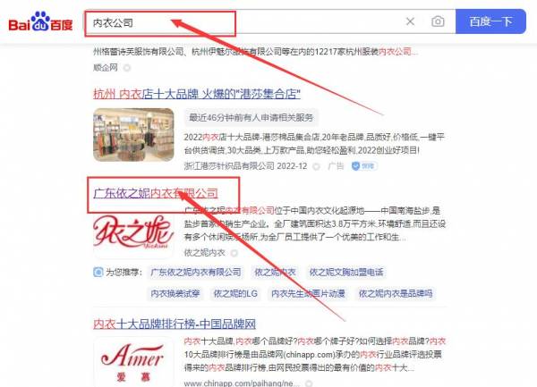 廣東依*妮內衣有限公司關鍵詞推廣排名效果展示