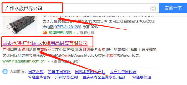 廣州國(guó)志水族用品供應(yīng)有限公司與本司簽約百度快照排名協(xié)議