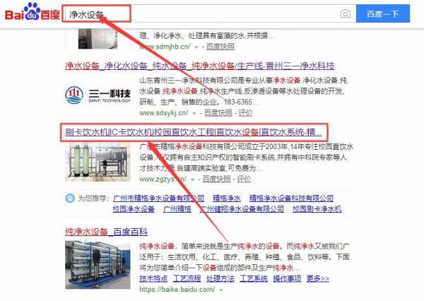 廣州市精格凈水設(shè)備科技有限公司和我公司簽訂百度快照排名項(xiàng)目