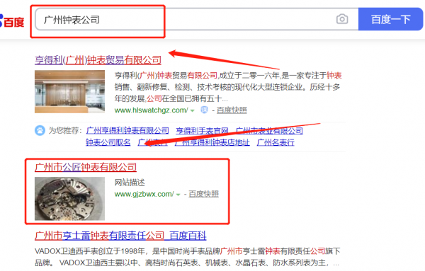 廣州市*匠鐘表有限公司選用我司企業鐘表的網站優化產品,其SEO關鍵詞有鐘表。各搜索引擎網絡營銷推廣,一站式策劃、建站、推廣等整合服務,快速提升曝光率、轉化率、成交率",技術面向客戶,沒有多余的中間環節費用,我們既要注重品質更要為你節約成本。廣州市*匠鐘表有限公司成立于1998年,是經廣州市市場監督管理局審核的有資質的公司,其統一社會信用代碼:914401053**526550L。公司地址:廣東省廣州市海珠區榕景路95號129自編2號。