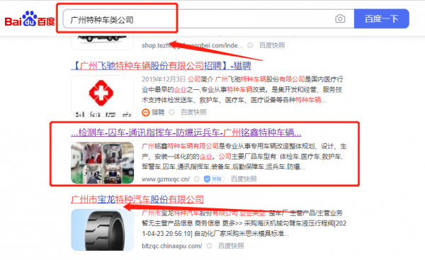我們公司與廣州銘*特種車輛有限公司合作中,對這個公司所經營的特種車類這個行業提供了百度排名,與該公司的合作,更多的客戶讓我們公司為其提供百度快照排名,通過每一次合作,我們公司不斷完善自己,同時希望合作伙伴在經營的路上越來越好。