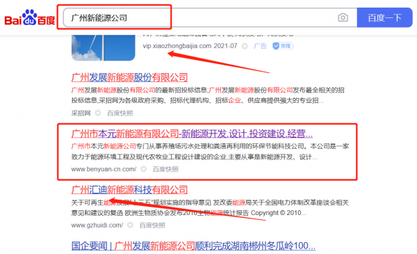 廣州市*元新能源公司網(wǎng)站SEO優(yōu)化效果展示