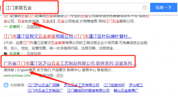 江門市蓬江區芝山五金工藝制品有限公司選用我司企業家居五金行業的網站優化產品,其SEO關鍵詞有家居五金。獲取訪客手機號等精準信息,自動生成網站流量和關鍵詞排名報告,推廣效果一目了然,無需專業人員打理。江門市蓬江區芝山五金工藝制品有限公司成立于1990年,是經江門市市場監督管理局審核的有資質的公司,其統一社會信用代碼:9144070579938178XU。公司地址:廣東省江門市新會區大澤鎮文龍文興村民委員會。