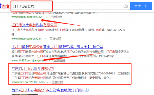 我們公司與江門市迅創電腦公司合作中,對這個公司所經營的電腦這個行業提供了SEO網站優化,與該公司的合作,更多的客戶讓我們公司為其提供百度快照排名,通過每一次合作,我們公司不斷完善自己,同時希望合作伙伴在經營的路上越來越好。