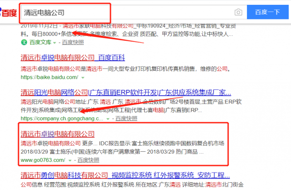 我們公司與清遠市卓銳電腦有限公司合作中,對這個公司所經(jīng)營的電腦這個行業(yè)提供了SEO網(wǎng)站優(yōu)化,與該公司的合作,更多的客戶讓我們公司為其提供百度快照排名,通過每一次合作,我們公司不斷完善自己,同時希望合作伙伴在經(jīng)營的路上越來越好。