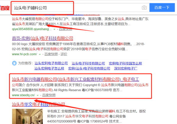 汕頭市新興電器有限公司選用我司企業電子輔料行業的網站優化產品,其SEO關鍵詞有電子輔料。覆蓋國內幾大主流搜搜引擎,占領電腦端、手機端,24小時快速獲取關鍵詞排名,搶奪流量。汕頭市新興電器有限公司成立于2002年,是經汕頭市市場監督管理局審核的有資質的公司,其統一社會信用代碼:914405007350322654。公司地址:廣東省汕頭市汕樟路102號A幢107、013、037號。