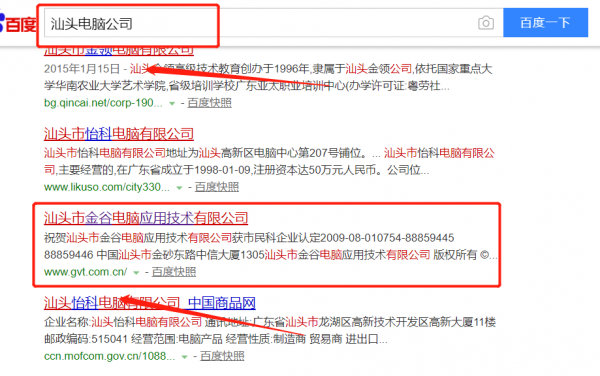 我們公司與汕頭市金谷電腦應用技術有限公司合作中,對這個公司所經營的電腦這個行業提供了SEO網站優化,與該公司的合作,更多的客戶讓我們公司為其提供百度快照排名,通過每一次合作,我們公司不斷完善自己,同時希望合作伙伴在經營的路上越來越好。