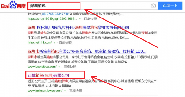正雄箱包(深圳)有限公司選用我司企業箱包行業的網站優化產品,其SEO關鍵詞有旅行箱、拉桿箱、化妝箱。按天計費,最快7天上詞,不到首頁不扣費。關鍵詞質量保證,白帽SEO符合百度算法,360、搜狗、移動端等排名效果免費贈送。正雄箱包(深圳)有限公司成立于2009年,是經深圳市市場監督管理局審核的有資質的公司,其統一社會信用代碼:914403006894028693。公司地址:深圳市福田區車公廟深南大道南江西世紀豪庭(江西大廈)13D。