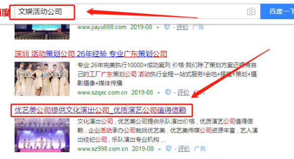 我們公司與深圳市優藝美文化傳媒有限公司合作中,對這個公司所經營的文娛活動這個行業提供了百度快照排名,與改公司的合作,更多的客戶讓我們公司為其提供百度快照排名,通過每一次合作,我們公司不斷完善自己,同時希望合作伙伴在經營的路上越來越好。