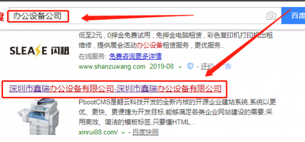 我們公司與深圳市鑫瑞辦公設備有限公司合作中,對這個公司所經營的辦公用品這個行業提供了百度快照排名,與改公司的合作,更多的客戶讓我們公司為其提供百度快照排名,通過每一次合作,我們公司不斷完善自己,同時希望合作伙伴在經營的路上越來越好。