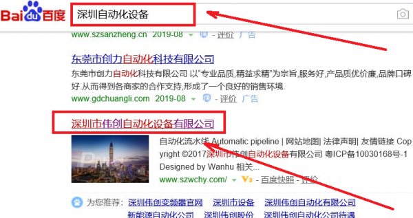 深圳市偉創自動化設備有限公司選用我司企業自動化設備的網站優化產品,其SEO關鍵詞有自動化設備。通過對搜索引擎目標關鍵詞優化,使目標網站的相關信息顯示在百度首頁,為企業挖掘更多的潛在客戶的同時帶來海量的商機。深圳市偉創自動化設備有限公司成立于1993年,是經深圳市市場監督管理局審核的有資質的公司,其統一社會信用代碼:91440300750489829W。公司地址:深圳市福田區梅林街道梅林路卓越梅林中心廣場(南區)A座701。