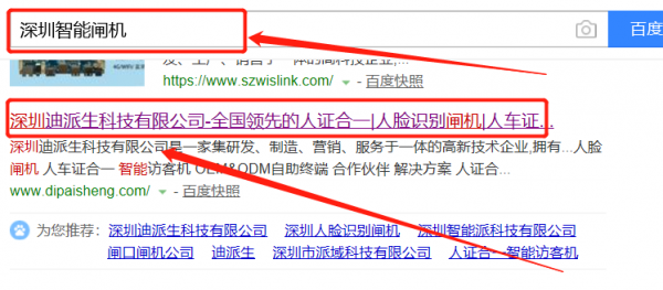 我們公司與深圳迪派生科技有限公司合作中,對(duì)這個(gè)公司所經(jīng)營(yíng)的智能閘機(jī)這個(gè)行業(yè)提供了關(guān)鍵詞搜索排名,與該公司的合作,更多的客戶讓我們公司為其提供關(guān)鍵詞搜索排名,通過(guò)每一次合作,我們公司不斷完善自己,同時(shí)希望合作伙伴在經(jīng)營(yíng)的路上越來(lái)越好。