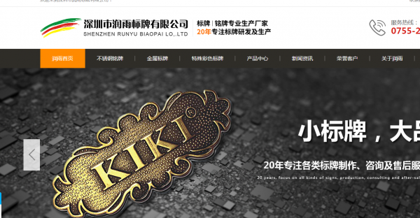 深圳市潤雨標牌有限公司選用我司企業網站設計優化產品,其seo關鍵詞為標牌制作,定制有針對性的SEO優化執行方案,根據盈利模式和核心產品選擇更適合的精準關鍵詞。配備專業SEO優化團隊,項目前期做好市場、企業定位、目標用戶、盈利模式分析      深圳市潤雨標牌有限公司成立于2016年,是經深圳市市場監督管理局審核的有資質的公司,公司地址:深圳市龍華新區華龍北路28號明新工業園A棟3樓