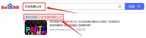 深圳鴻*文化傳媒有限公司百度快照排名案例欣賞
