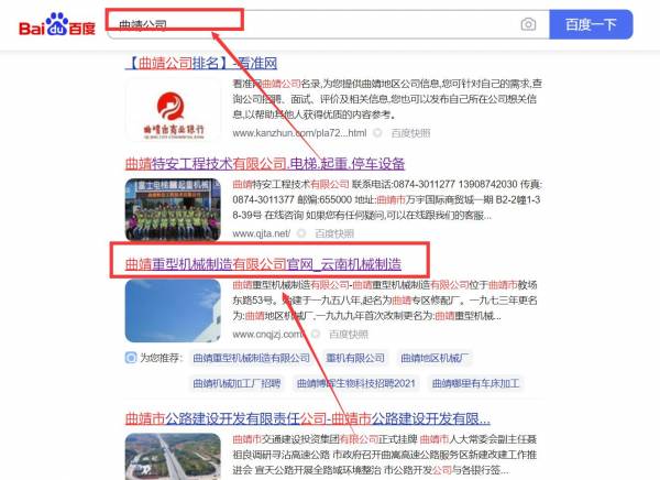 曲靖重*機械制造有限公司網站優化排名效果展示