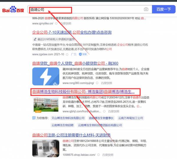 曲靖博*生物科技股份有限公司網站優化最快上詞效果展示