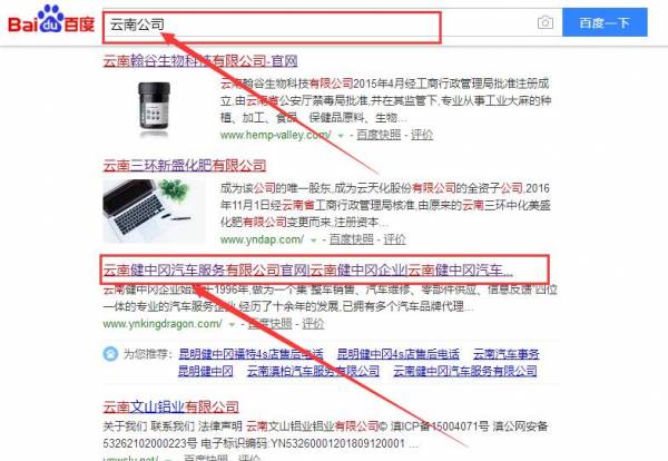 云南健中岡汽車服務有限公司和我公司簽訂百度快照排名項目