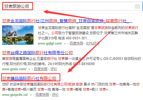 甘肅臻品國際旅行社有限公司與我司做網(wǎng)站推廣項目,甘肅臻品國際旅行社有限公司選用我司旅游行業(yè)的網(wǎng)站優(yōu)化產(chǎn)品,其SEO關鍵詞有甘肅臻品國際旅行社有限公司。主要針對百度、搜狗、360等搜索引擎進行快速排名優(yōu)化服務,關鍵詞排名必要條件是在搜索結果前3頁,周期15天內(nèi)可優(yōu)化到搜索引擎首頁。甘肅臻品國際旅行社有限公司成立于2016年,是經(jīng)蘭州市工商行政管理局城關分局審核的有資質的公司,其統(tǒng)一社會信用代碼:91620102MA720RW33R。公司地址:甘肅省蘭州市城關區(qū)雁寧路336號3單元201室。