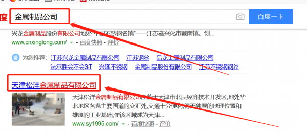 我們公司與 天津松洋金屬制品有限公司合作中,對這個公司所經(jīng)營的金屬制品這個行業(yè)提供了百度快照排名,,同時讓我們積累到更多的經(jīng)驗,與這個公司建立了友好的合作伙伴的關(guān)系,也提高了海洋網(wǎng)絡(luò)在同行業(yè)的知名度,提高了在同行業(yè)的知名度,發(fā)展越來越好。