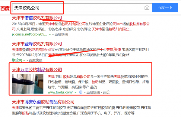 天津萬達膠粘制品有限公司與我司簽下關鍵詞優化排名協議