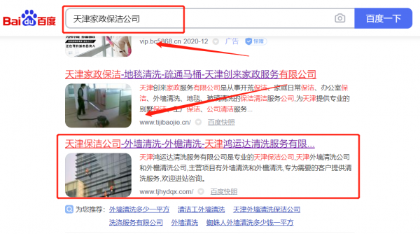天津*運達清洗服務有限公司關鍵詞搜索排名最快上詞效果展示