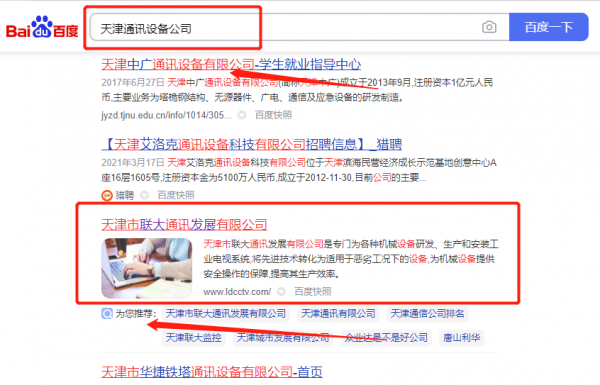 我們公司與天津市*大通訊發展有限公司合作中,對這個公司所經營的通訊設備這個行業提供了優化排名,與該公司的合作,更多的客戶讓我們公司為其提供快速排名,通過每一次合作,我們公司不斷完善自己,同時希望合作伙伴在經營的路上越來越好。