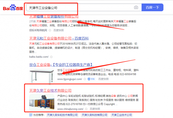 天津久*工業(yè)技術(shù)有限公司百度關(guān)鍵詞排名專注一站式品牌營銷整合推廣