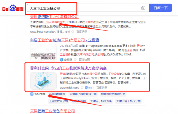 天津*利科物聯(lián)網(wǎng)技術(shù)有限公司百度關(guān)鍵詞排名排名案例欣賞