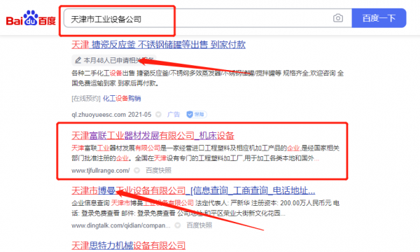 天津市富*工業器材開發有限公司百度關鍵詞排名排名參考網站