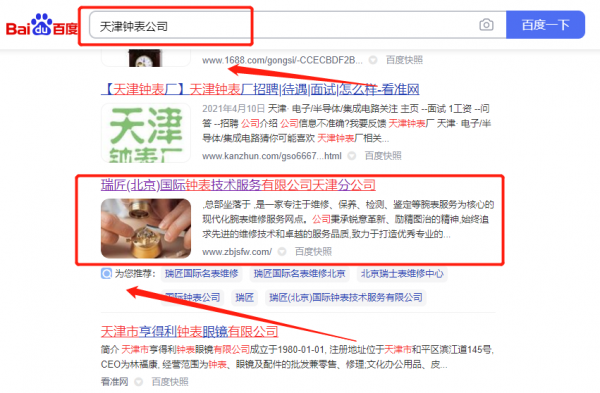 瑞*(北京)國際鐘表技術服務有限公司天津分公司百度排名到首頁無排名不收費