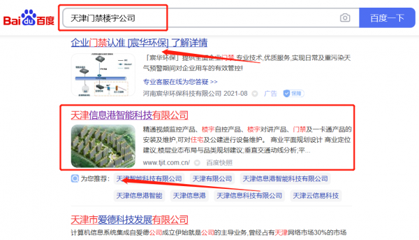 天津信*港智能科技有限公司百度關(guān)鍵詞排名保證在首頁效果