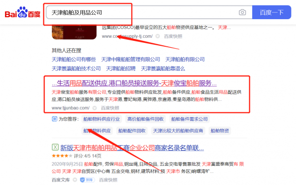 天津*寶船舶工程有限公司百度關鍵詞排名案例欣賞