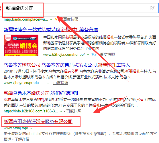 新疆古麗熱依汗婚慶服務有限公司與我司做搜索引擎優化推廣項目,新疆古麗熱依汗婚慶服務有限公司選用我司婚禮策劃行業的網站優化產品,其SEO關鍵詞為新疆古麗熱依汗婚慶服務有限公司,無論你關鍵詞是在20名內、30名內、還是50名內。我們都可以在最短時間優化至搜索引擎的首頁。提供后臺管理,排名查詢、關鍵詞管理、財務扣費一目了然,一鍵操作。新疆古麗熱依汗婚慶服務有限公司成立于2015年,是經巴楚縣市場監督管理局審核的有資質的公司,其統一社會信用代碼:916531303331188912。公司地址:新疆喀什地區巴楚縣巴楚鎮友誼北路。