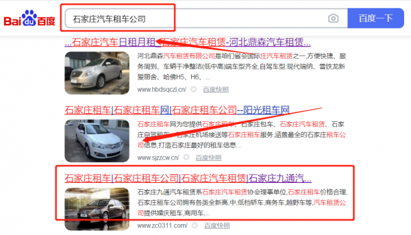 石家莊九*汽車租賃有限公司百度關鍵詞排名案例欣賞