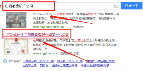 我們公司與山西冶金巖土工程勘察有限公司第一分公司合作中,對這個公司所經營的冶金礦產這個行業提供了快速排名,與該公司的合作,更多的客戶讓我們公司為其提供快速排名,通過每一次合作,我們公司不斷完善自己,同時希望合作伙伴在經營的路上越來越好。