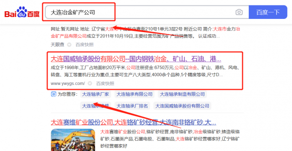 我們公司與大連*威軸承股份有限公司合作中,對這個公司所經(jīng)營的冶金礦產(chǎn)這個行業(yè)提供了網(wǎng)站推廣,與該公司的合作,更多的客戶讓我們公司為其提供關(guān)鍵詞搜索排名,通過每一次合作,我們公司不斷完善自己,同時希望合作伙伴在經(jīng)營的路上越來越好。