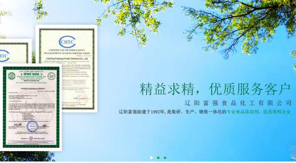 遼陽富強秉承“產(chǎn)品質(zhì)量第一、信譽第一、服務(wù)第一”的宗旨。為了保證產(chǎn)品質(zhì)量,遼陽富強具有實驗室、菌檢室及開發(fā)部,嚴(yán)格按照《美國藥典》(USP)、《英國藥典》(BP)、《美國食品化工典》(FCC)版的標(biāo)準(zhǔn)進行生產(chǎn)與檢驗。遼陽富強的產(chǎn)品全部遠銷歐美、東南亞等國家和地區(qū)。高質(zhì)量的產(chǎn)品,周到的服務(wù)得到了國內(nèi)外客戶的認(rèn)可和好評,獲得了他們的信賴,建立了長期合作的業(yè)務(wù)關(guān)系。因此,遼陽富強竭誠歡迎國內(nèi)外客戶前來洽談業(yè)務(wù),進行合作,共同發(fā)展。